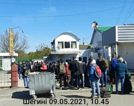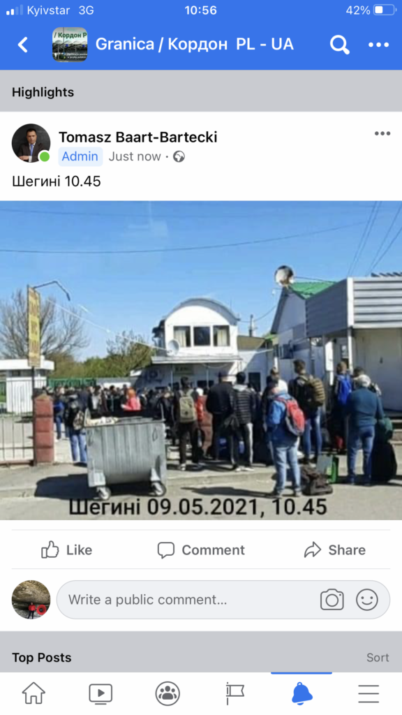 - на пішому переході у “Шегинях” вишикувалась черга, скрін повідомлення