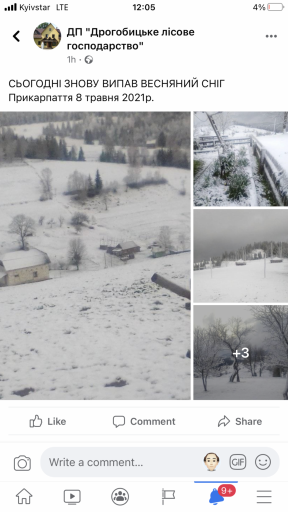 «Сьогодні знову випав весняний сніг. Прикарпаття 8 травня 2021 року», – йдеться у повідомленні.