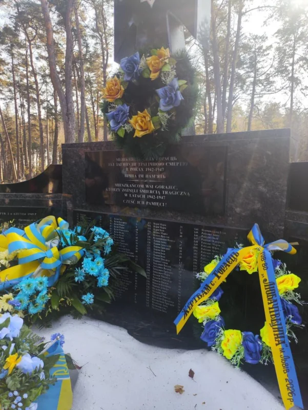 Учасники події взяли участь у спільній молитві за невинно вбитими цивільними українцями біля села Гораєць.