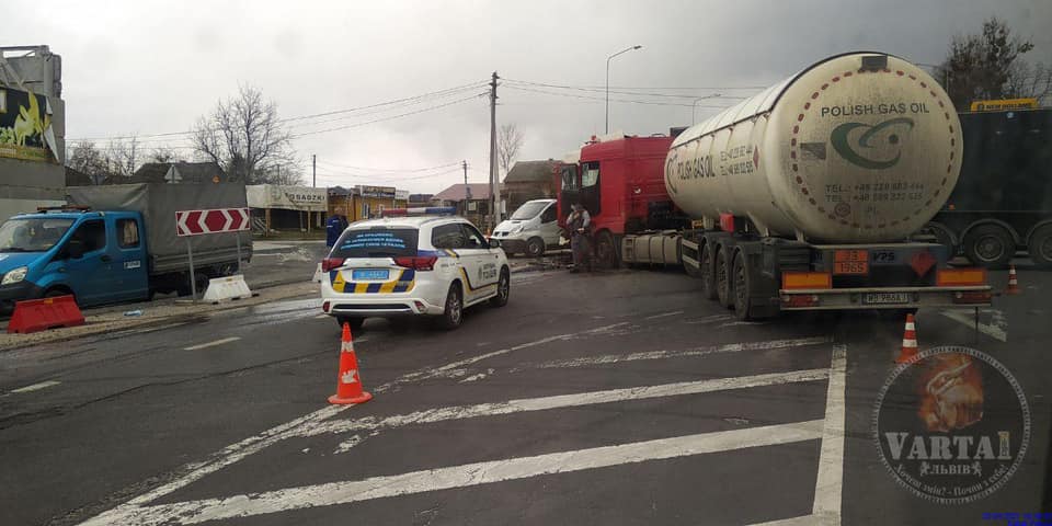 - На трасі “Київ – Чоп” не розминулись вантажівки, фото Варта-1
