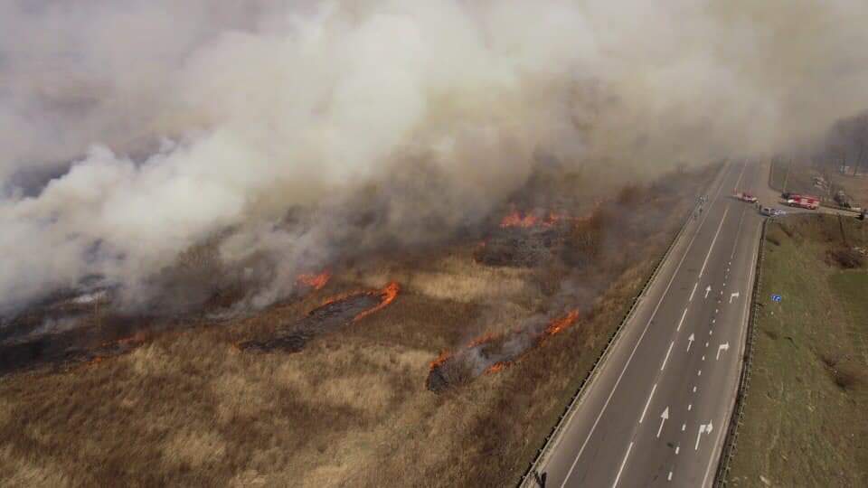 На трасі “Київ-Чоп” зупиняли рух через підпал трави (ФОТОРЕПОРТАЖ)