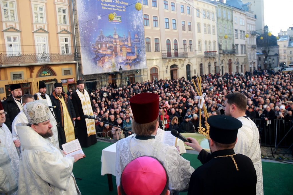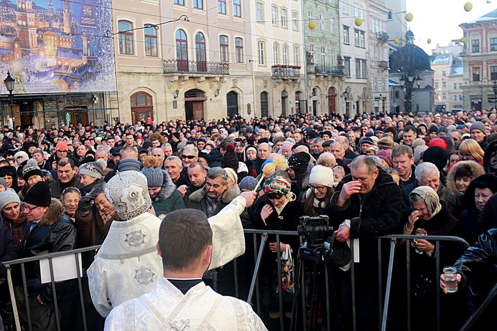 Сьогодні, 19 січня, на Водохреща, у центрі Львова відбулось традиційне щорічне загальноміське освячення води за участю представників різних християнських конфесій міста.