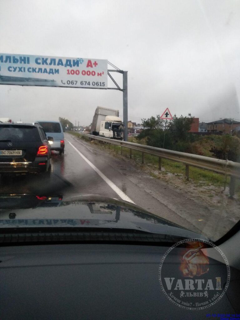- На виїзді зі Львова вантажівка потрапила у ДТП, фото Варта-1