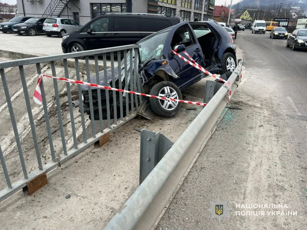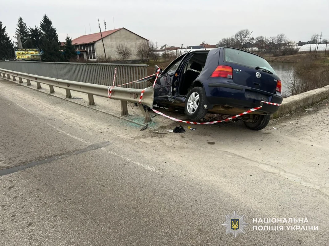 Так правоохоронці встановили, що 26-річний мешканець села Заріччя, керуючи автомобілем «Volkswagen Golf», не впорався з керуванням та вʼїхав у металевий відбійник на мосту.