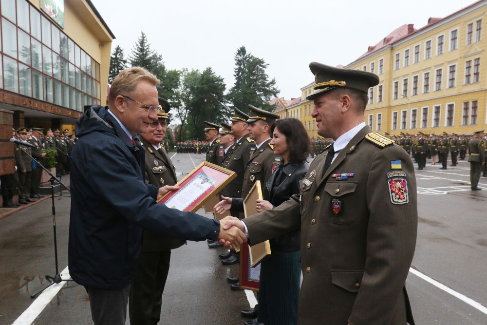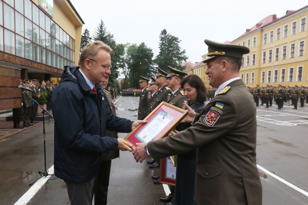 Бажаю всім здоров’я, викладачам – мудрості й терпіння. Насправді Львів пишається Національною академією сухопутних військ. Слава Національній академії сухопутних військ! Слава Україні»,- звернувся до присутніх міський голова Львова Андрій Садовий.