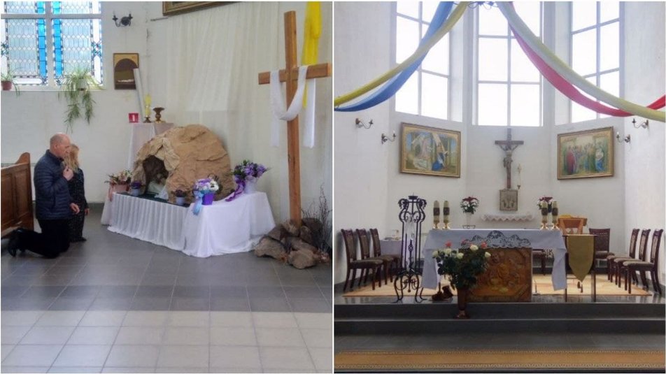 “Головна частина святкування пасхальних свят – це нічна літургія в суботу, яка починається від освячення вогню і це відрізняє літургію католиків від православних. Також запалюється світло у храмі, що символізує перемогу Христа над смертю та ніччю і світанок Воскресіння і, звичайно, на закінчення літургії освічуємо паски так само, як і в православній церкві”, – розповів отець Християн, настоятель парафії Святого Духа.