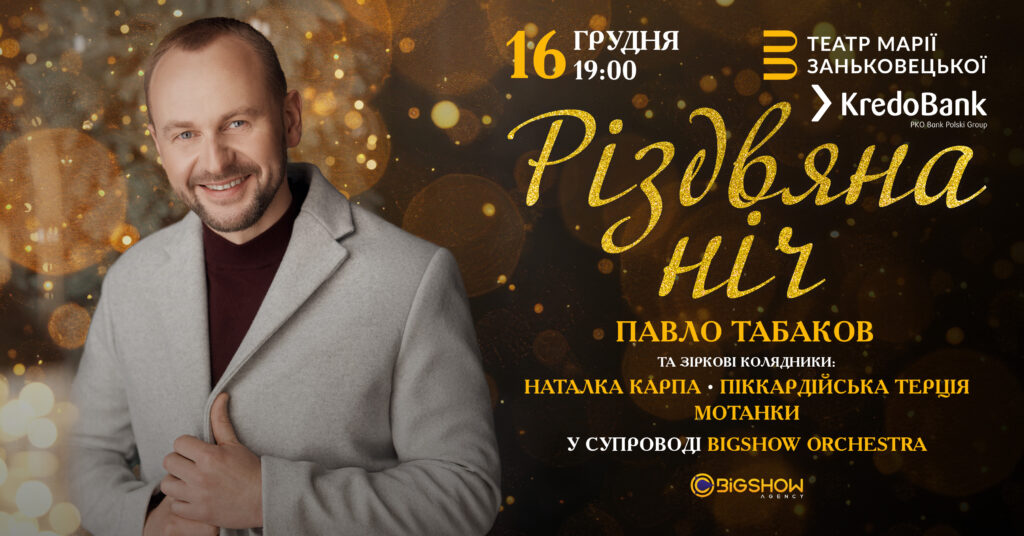 У вівторок, 16 грудня, у Львові, на сцені Національного драматичного театру ім. М. Заньковецької, відбудеться святковий, різдвяно-новорічний концерт Павла Табакова “Різдвяна Ніч”. Початок – о 19:00.