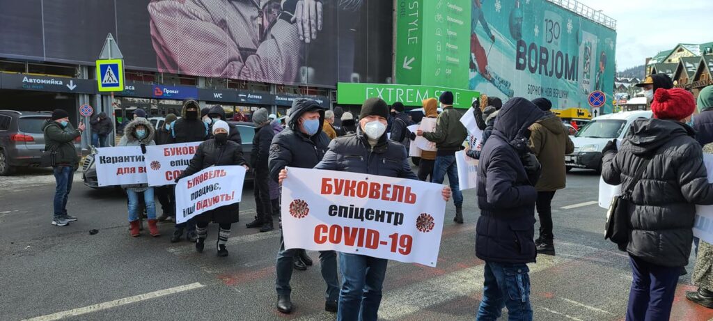 У Буковелі активісти перекрили дорогу, вимагають закрити курорт на карантин.