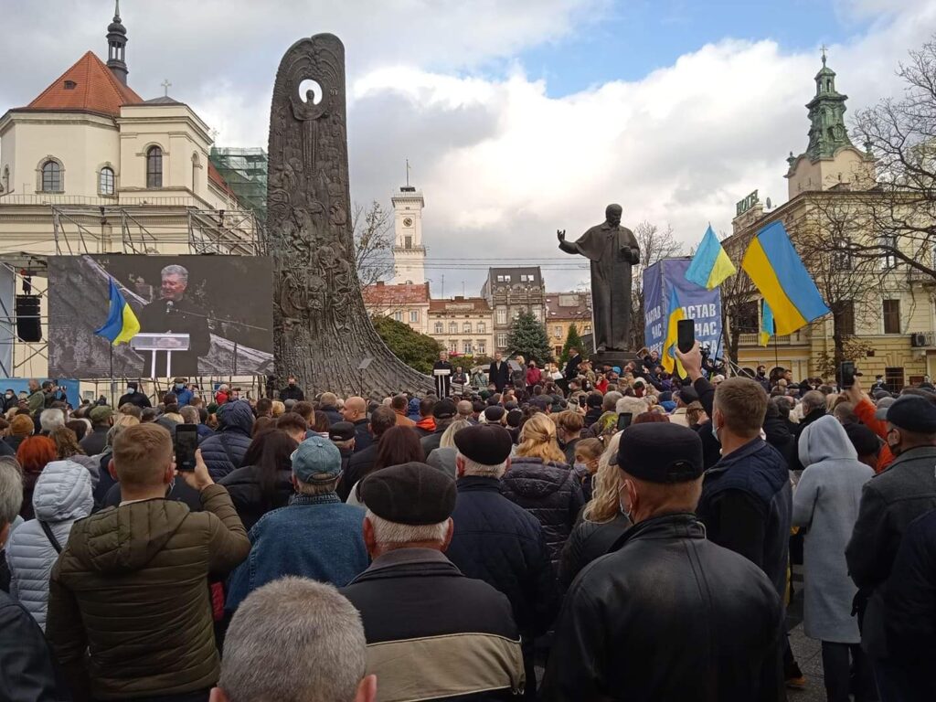 П’ятий Президент України Петро Порошенко прибув у центр Львова.