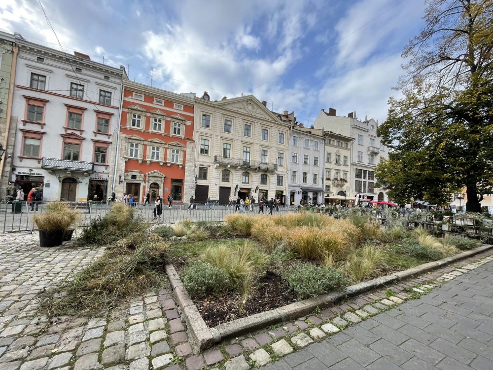 На площі Ринок садівники Львова впорядкували клумбу. Частину рослин пересадили та підстригли. Як повідомили в управлінні екології та природних ресурсів Львівської міськради, навесні на цьому місті мають розквітнути жовті тюльпани.