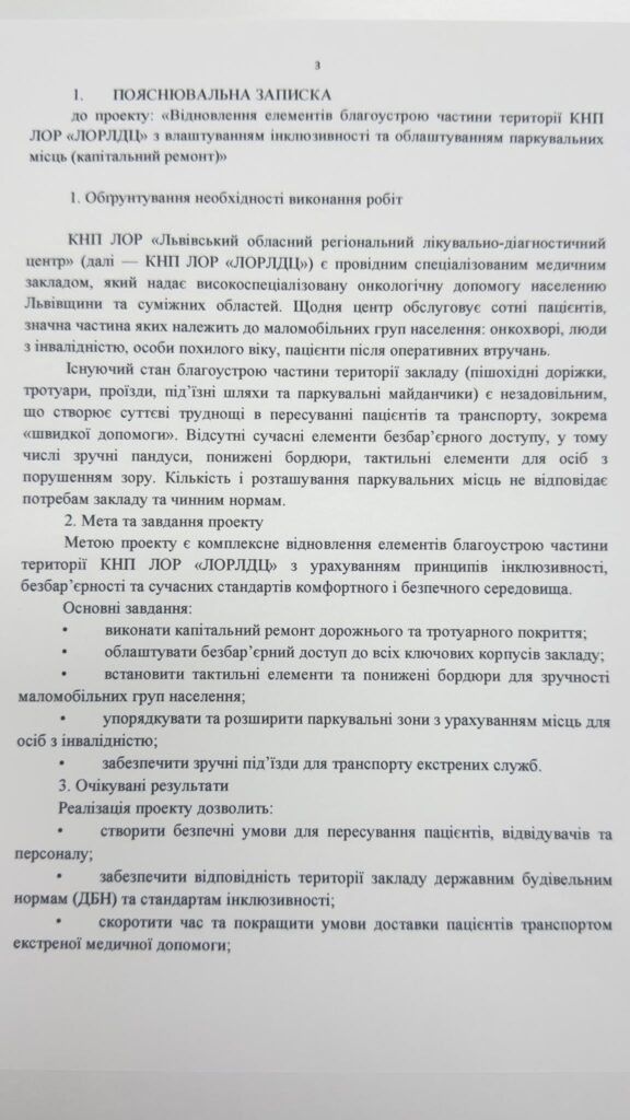 благоустрою частини території КНП ЛОР «ЛОРЛДЦ» з влаштуванням інклюзивності та облаштуванням паркувальних місць (капітальний ремонт)», з очікуваною вартістю 16 475 462 тис. грн.