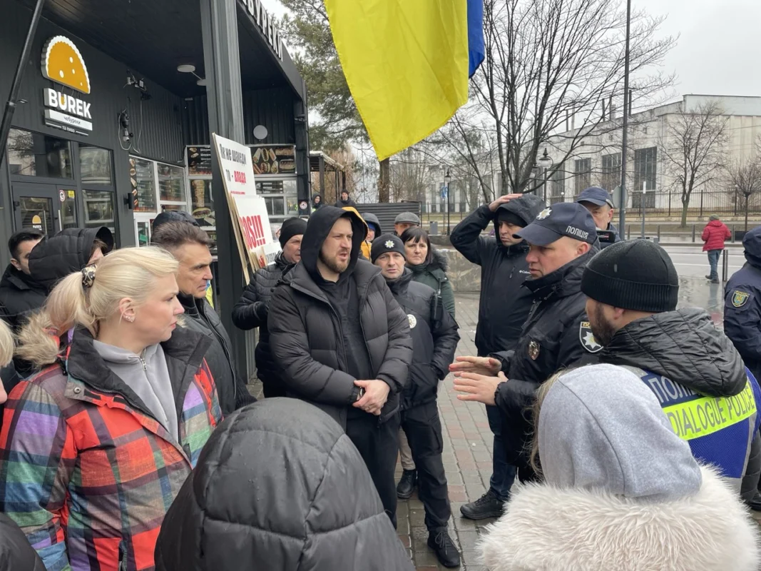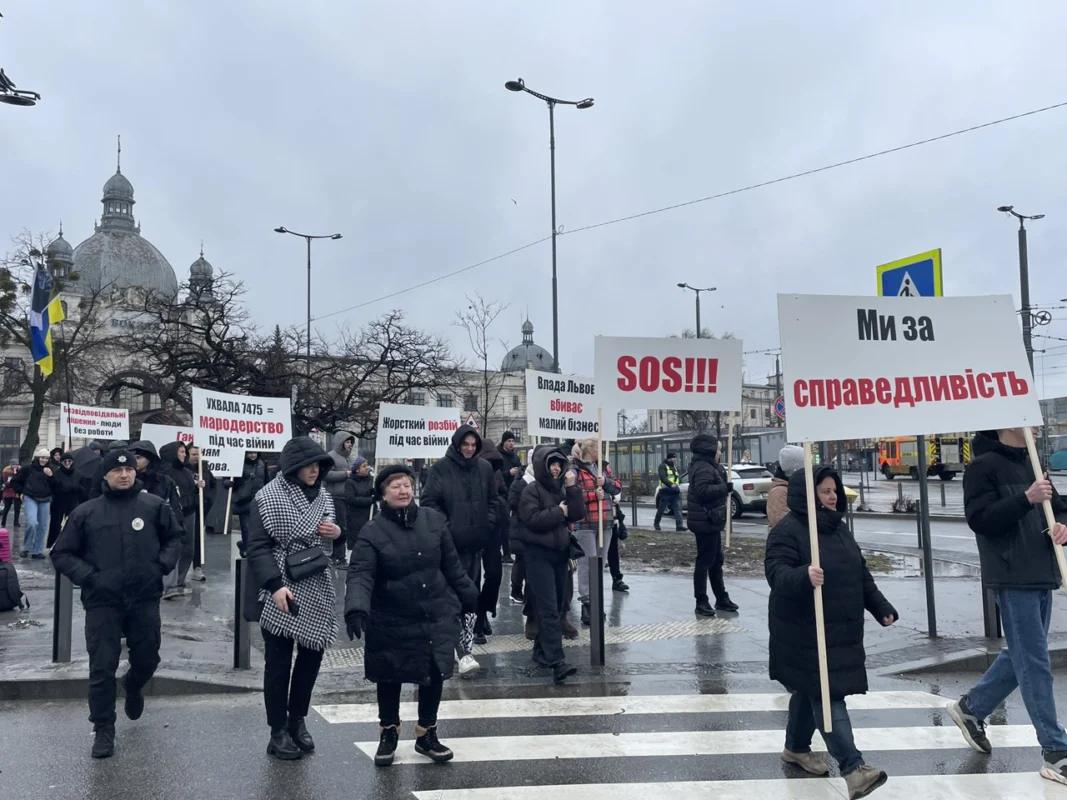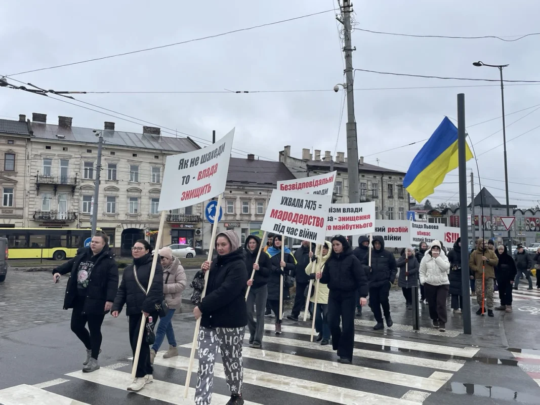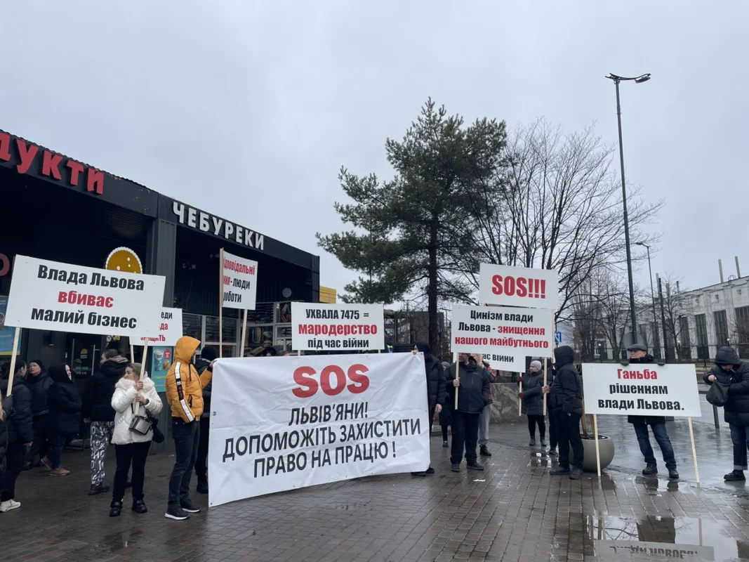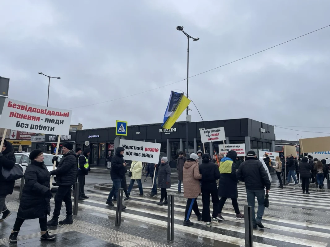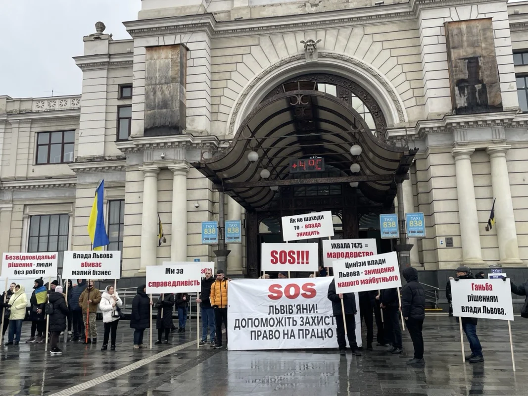 У вівторок, 24 лютого 2026 року, біля львівського залізничного вокзалу відбувся протест підприємців проти раніше прийнятого рішення Львівської міської ради про обов’язковий демонтаж павільйонів, розташованих на вул. Чернівецька, 11–13–15.