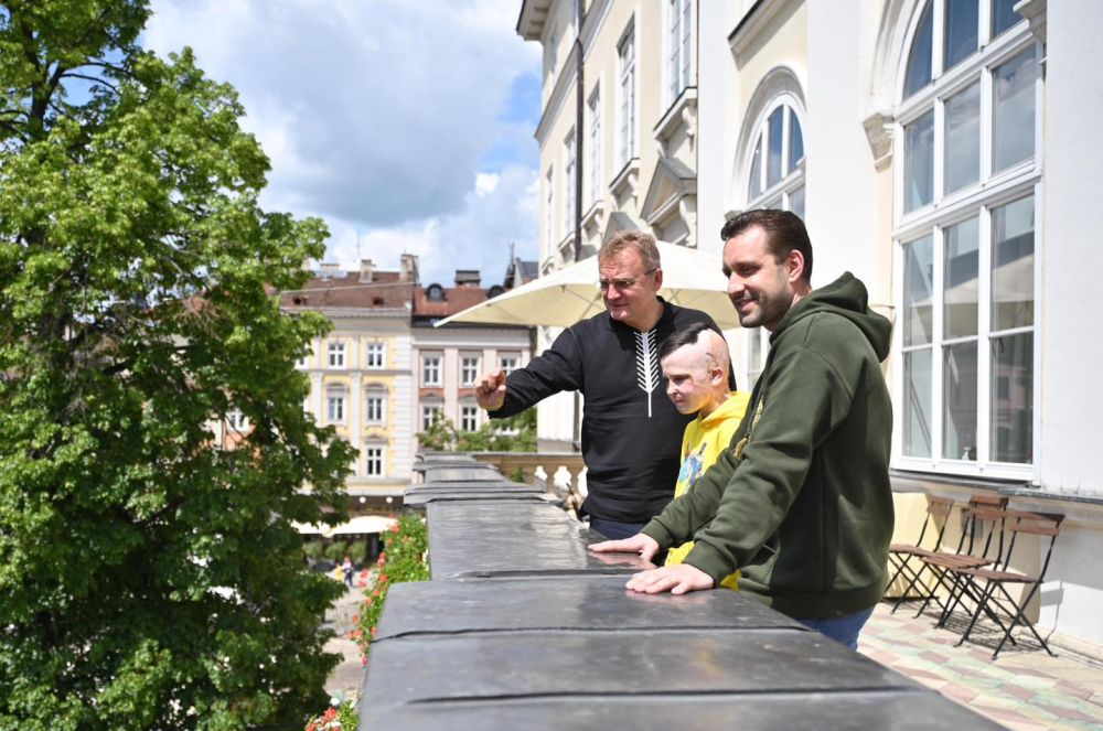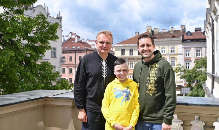 Міський голова Львова Андрій Садовий зустрівся з десятирічним львів’янином Романом Олексівим, який у липні 2022 року зазнав важких поранень під час ракетного удару по центру Вінниці. Тоді загинула його мама, а сам хлопчик отримав опіки майже половини тіла.