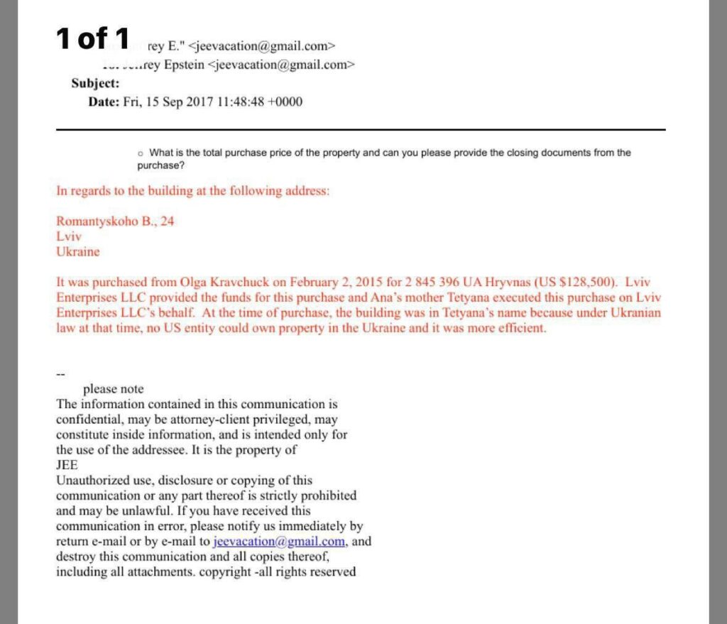 У мережі з’явилися приголомшливі подробиці з так званих «файлів Епштейна». Виявилося, що скандальний американський фінансист Джеффрі Епштейн, звинувачений у секс-торгівлі людьми, мав неабиякий інтерес до української нерухомості, зокрема у Львові.