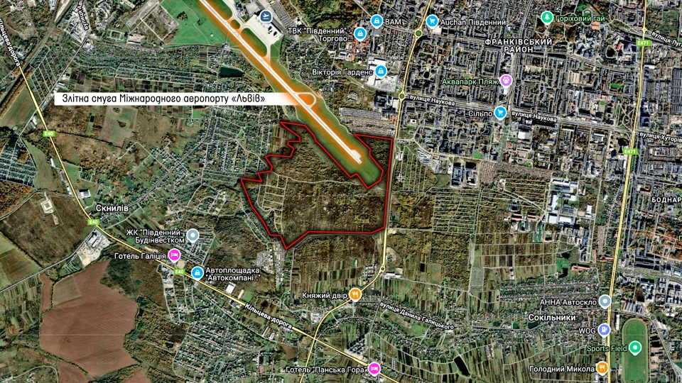 Щодо територій навколо аеропорту: погляньте на карту — зі сторони Сокільників там вільний простір. Ми відступили від летовища на 500–600 метрів. Натомість Львів зі свого боку забудував приаеродромну територію (від вулиці Патона чи Трускавецької) впритул. Закон має бути одним для всіх. Не можна говорити про обмеження лише для Сокільників, закриваючи очі на дії Львова. Тим паче у нас є офіційні листи від Державіаслужби, які підтверджують правильність зонування.