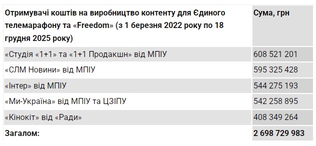 З урахуванням видатків на ще один телемарафон «Freeдом» виробникам контенту для обох марафонів заплатили вже 2,70 млрд грн. Про це свідчать дані систем «Прозорро» та «007».