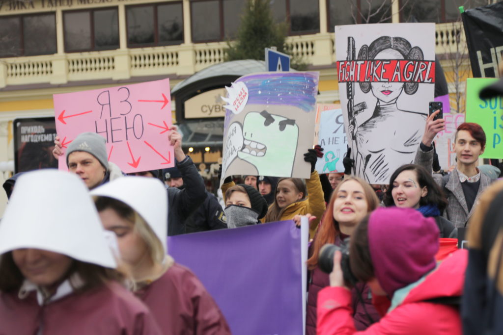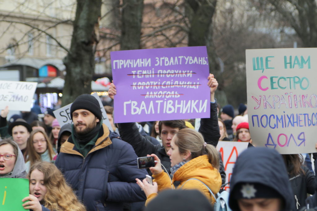 До участі у марші долучились десятки борців за права жінок, серед яких було чимало чоловіків.