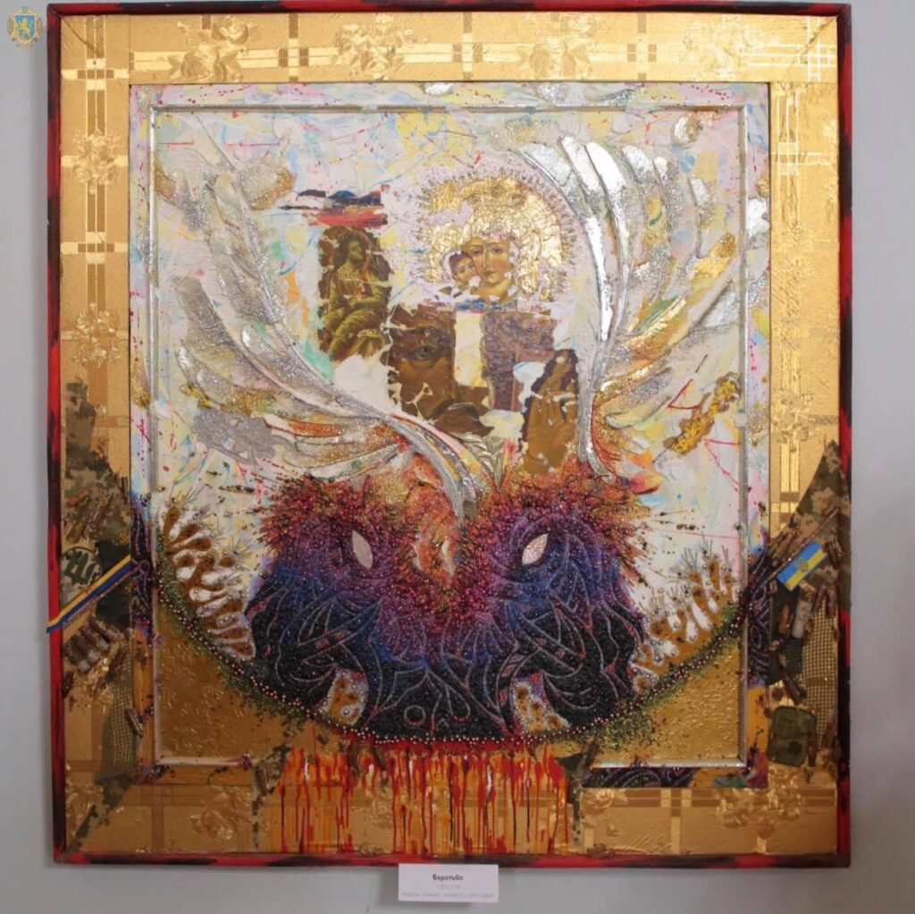 Виставка «Через призму війни та постать Ісуса Христа» – мистецький проект, що має на меті нагадати суспільству про війну. Всі твори в оригінальній та сучасній інтерпретації, з сакральним нахилом.