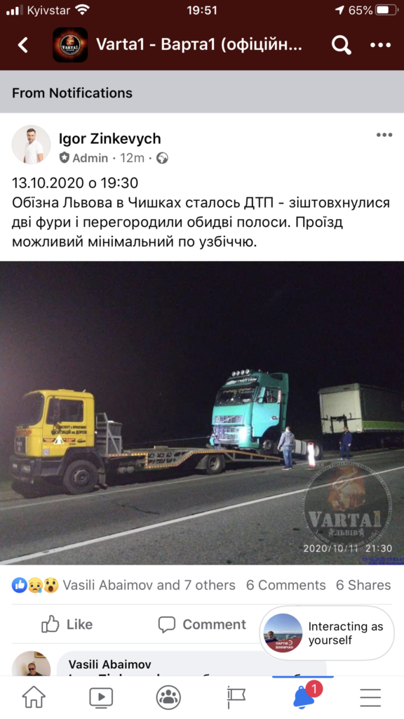 У Чишках сталась аварія – зіштовхнулись дві вантажівки і перекрили рух на двох полосах.