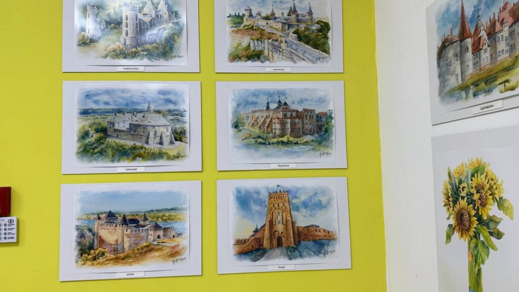 «Для Ольги фарби та папір були серед тих найнеобхідніших речей, які вона прихопила з собою на початку повномасштабного вторгнення. А Ірина професійно займається фотографією ще зі студентських часів. Цих мисткинь неможливо порівнювати, але їхні роботи чудово доповнюють одне одного», — додають у Гончаренко центрі.