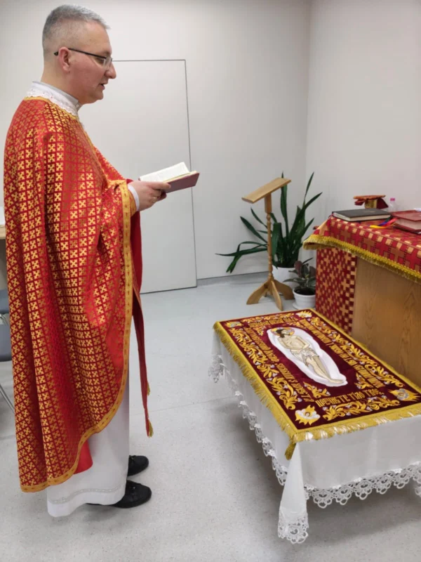 «Лікарня — це місце, де щодня триває боротьба за життя, де надія додає сил, а молитва стає міцною опорою. Плащаниця нагадує нам, що навіть у найскладніші моменти Бог завжди поруч», — зазначає капелан Львівського онкоцентру Василь Золотий.