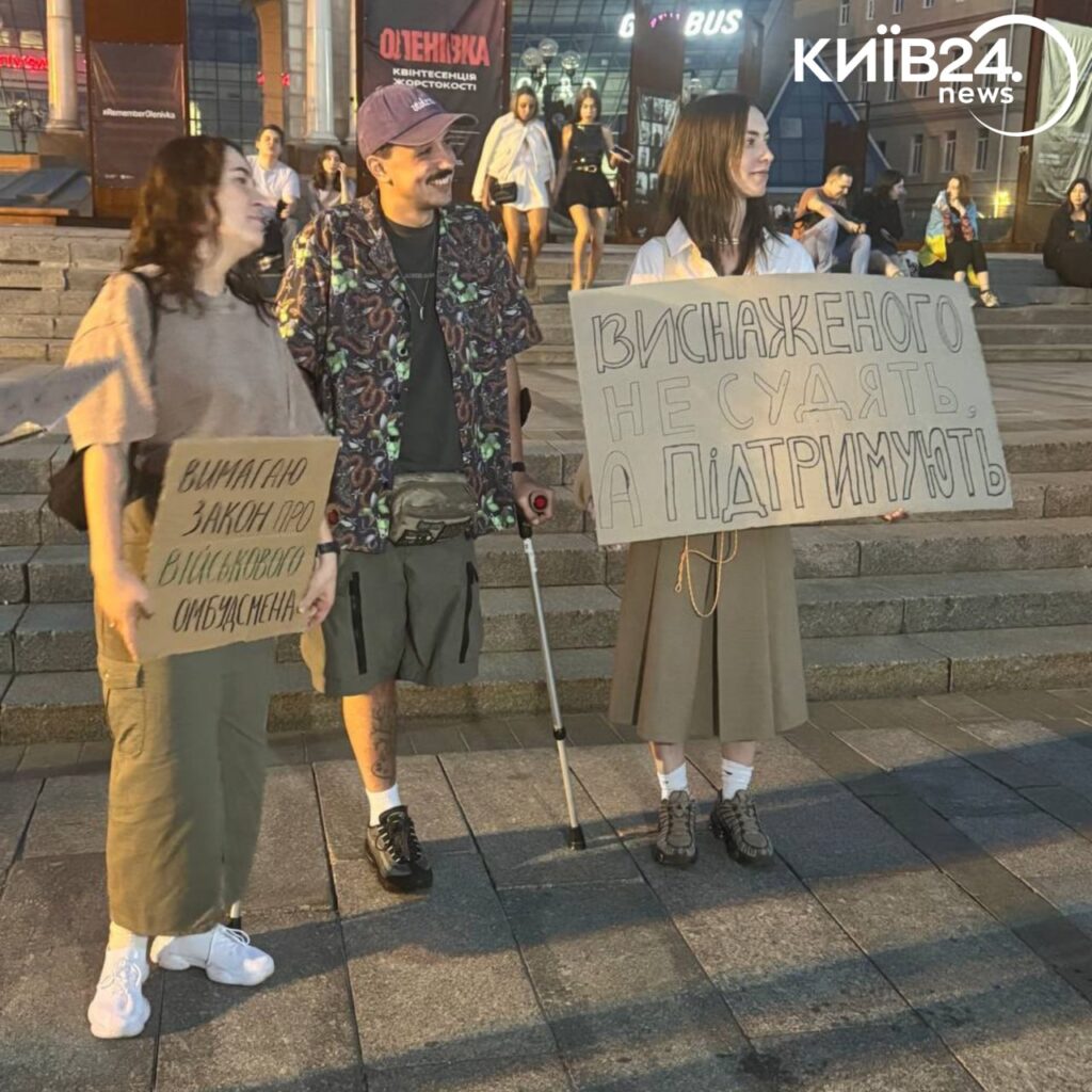 У столиці учасники акції вимагають ухвалити закон про військового омбудсмана, не ухвалювати законопроєкт № 13452, який посилює кримінальну відповідальність для військових, а також скасувати норми закону № 8271 від 2022 року про покарання захисників.