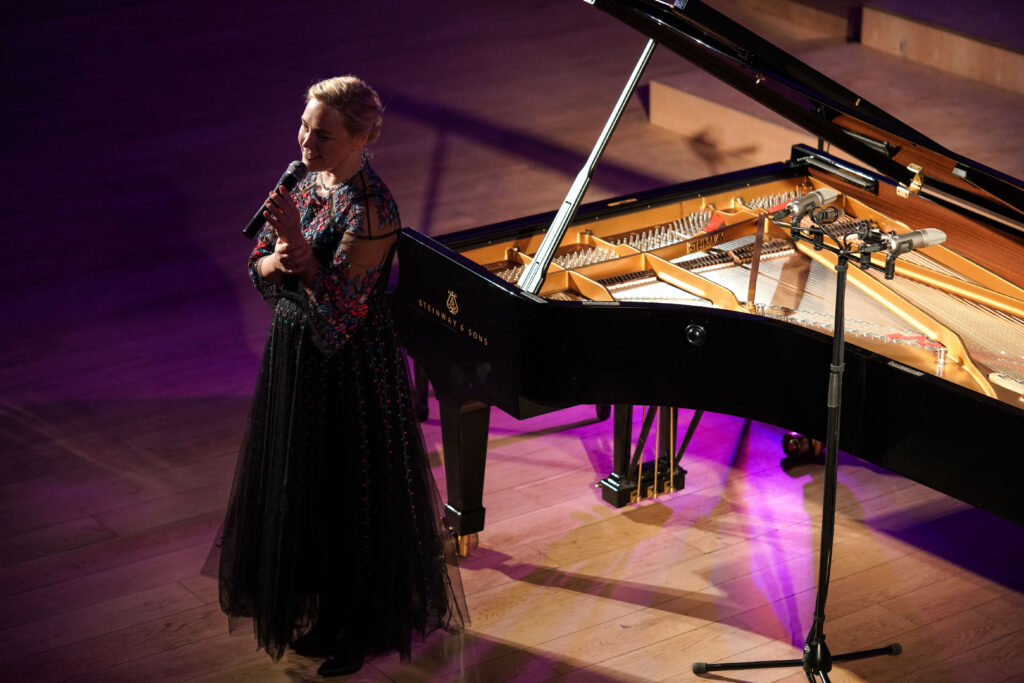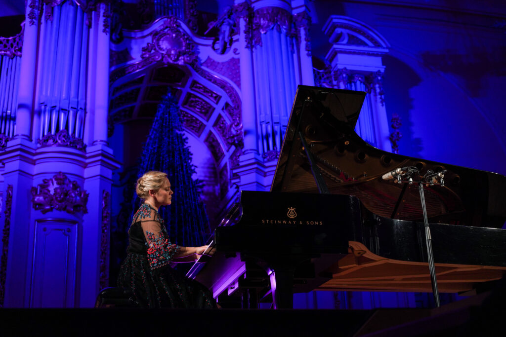 “Для мене грудень — це час, коли дуже хочеться чути різдвяну музику. Я піаністка, тому хочу слухати музику для фортепіано. Я, на жаль, як і багато українців, не маю змоги кожного року бути в Україні під час свят, але через музику хочу відчути цей зв’язок — з домом, з батьками, традиціями, з всім тим, що асоціюється з Різдвом. Тому цьогоріч я вирішила нарешті записати цей диск”, — зі сцени поділилась музикантка.