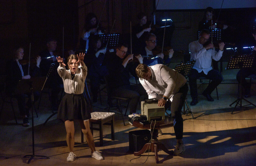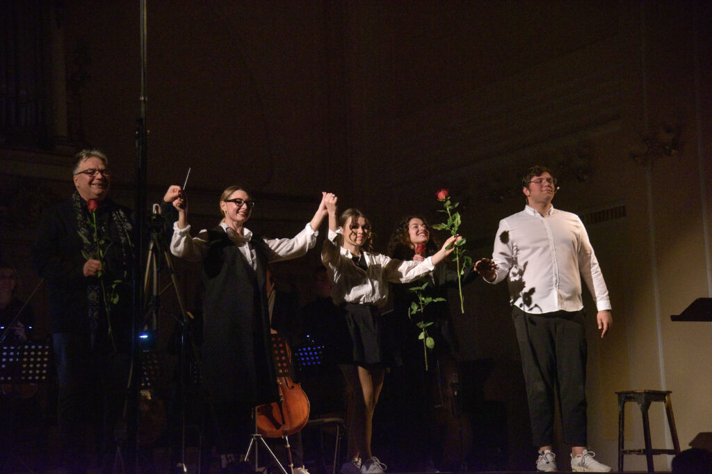 На сцені представили сучасну композицію: Анастасія Поважна, сопрано, Станіслав Цема, контратенор, Національний ансамбль солістів «Київська камерата» та диригентка Наталія Стець.