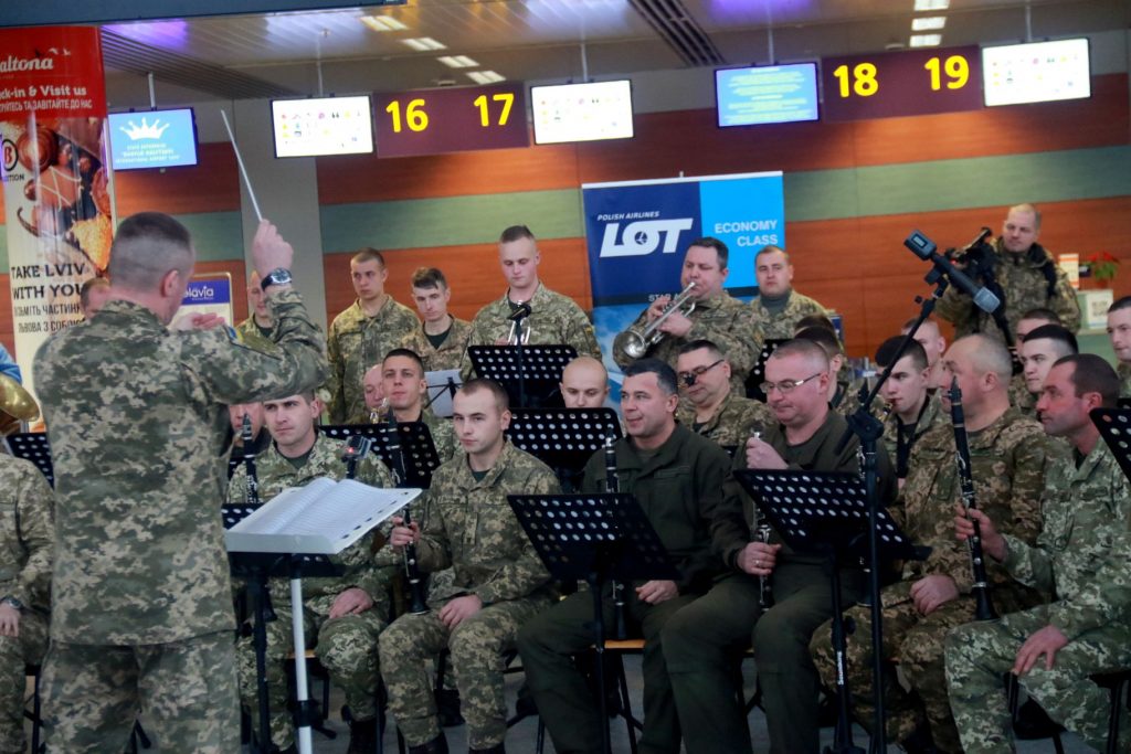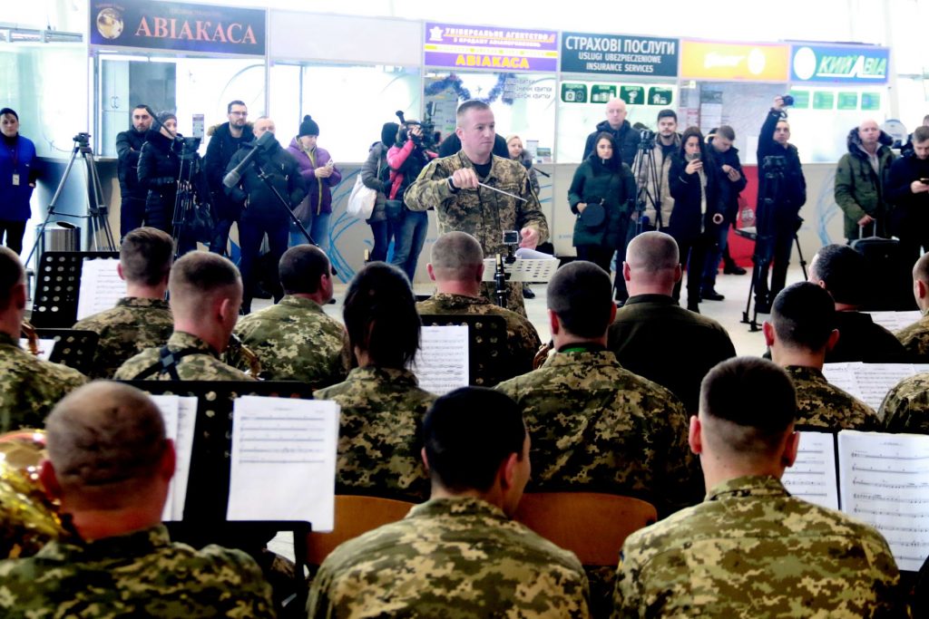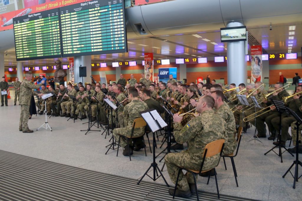 Додамо, що сьогодні виступи зведених військових оркестрів відбудуться у Міжнародних аеропортах «Бориспіль», «Дніпропетровськ», «Запоріжжя», «Івано-Франківськ», «Одеса» та «Харків», а також у популярних торгівельно-розважальних центрах Чернігова та Вінниці.\