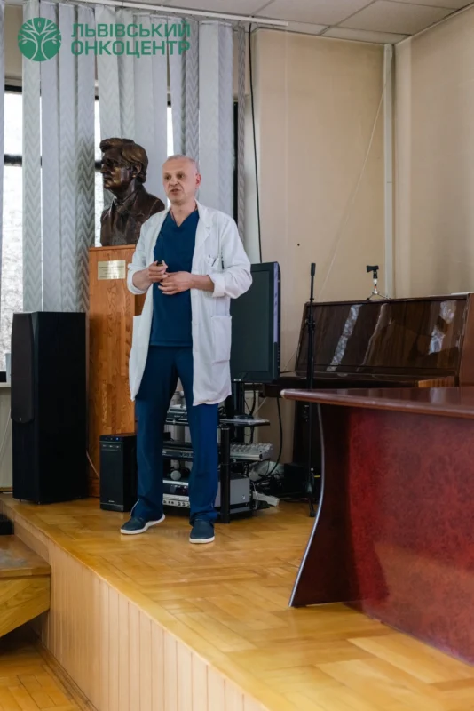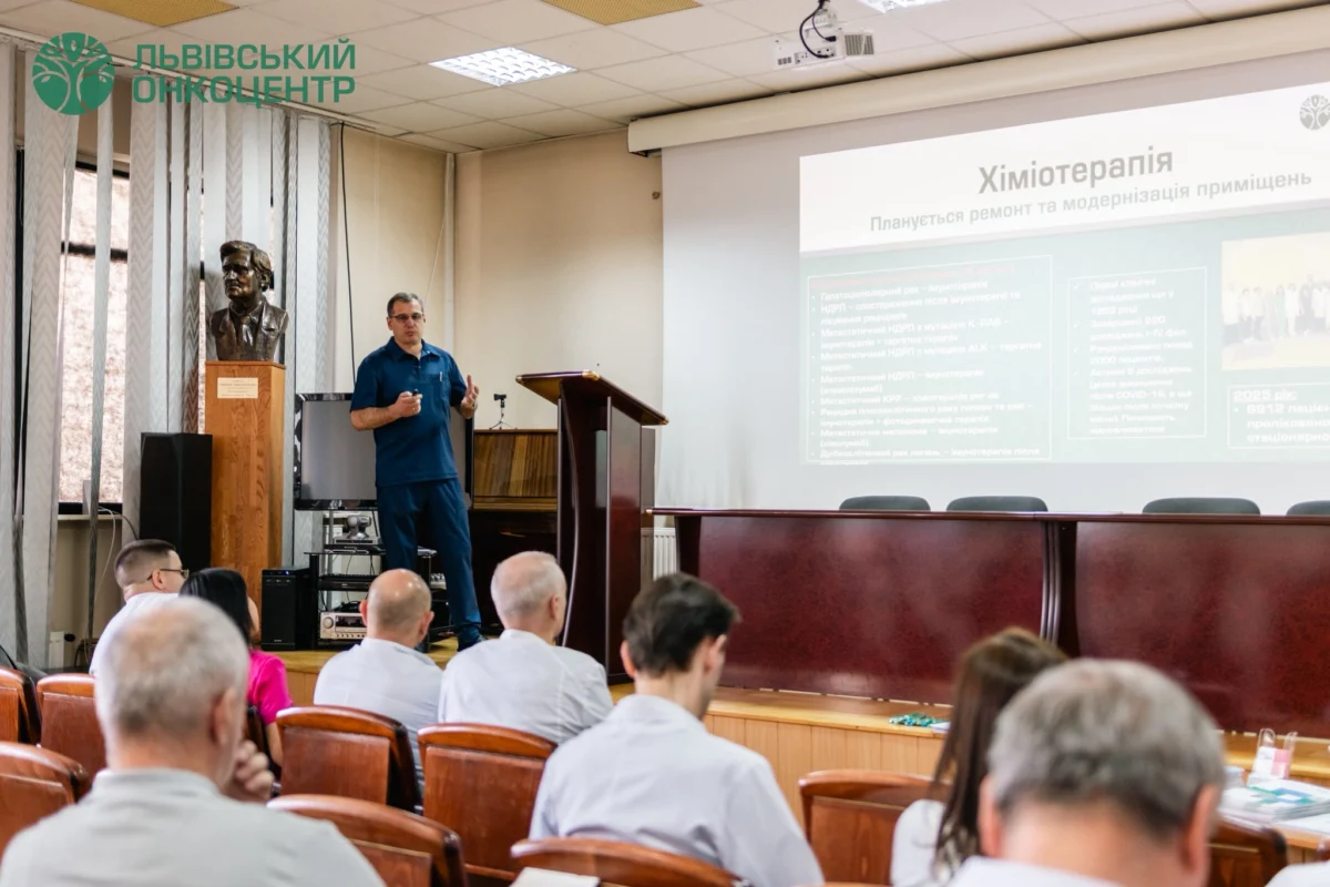 Захід обʼєднав фахівців із лікарень міста Львова та області. Учасників заходу привітав генеральний директор Львівського онкоцентру Олег Дуда, який розповів про роботу та можливості лікувального закладу.