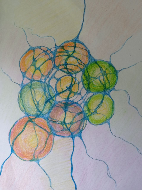 — Мої роботи — це відбитки природи: квіти, пейзажі, рибки, пташки. А от у нейрографіці я пропрацьовую багато тем, пов’язаних із психологією. Наприклад: «Я в минулому, теперішньому і майбутньому», «Мої ресурси», «Як я набуваю досвіду» або «Які ресурси надає мені простір, щоб розвинути в собі нові риси, що можуть знадобитися у професії психолога». Завдяки методикам нейрографіки можна промальовувати різні стани, питання, стосунки. Це глибокий процес, що поєднує мистецтво із самопізнанням. За один день я створила сім робіт. і кожна стала окремим етапом моєї внутрішньої подорожі. Одного разу я випадково потрапила на відкриту конференцію, де виступали інструктори з нейрографіки. Вони ділилися своїми історіями: розповідали, як захопилися цим напрямом, скільки років у ньому працюють, які теми досліджують і як промальовують їх через методики нейрографіки. Це дуже надихало — я відчула, що потрапила у своє середовище.