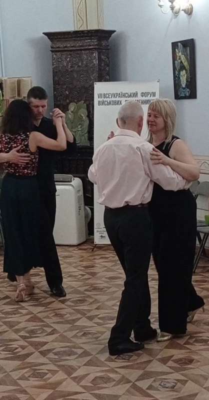 — На вокзалі нас зустріли волонтери і друзі з танго-спільноти — вони запропонували помешкання, куди одразу й відвезли. Ми не брали зі собою багато речей, бо сподівалися за кілька місяців повернутися. Я дуже вдячна Володимирові — чоловікові з танго-спільноти, який упродовж трьох років здавав нам квартиру. Він розумів мою ситуацію, бо сам доглядав хвору матір. Так ми у двокімнатній квартирі разом піклувалися про лежачих батьків. Члени спільноти допомогли грошима, поки я переводила справу батька з Краматорська до Львова. Процедура тривала три місяці. Я щиро молила Всевишнього, щоб тільки не влучило в архів — тоді все було б втрачено. На щастя, молитви були почуті: мені вдалося оформити пенсію з догляду за батьком і отримати допомогу для біженців. Це були невеликі кошти, але саме вони допомагали нам виживати. У 2018 році батько помер. Він так і не зміг повернутися до Краматорська, і навіть місце його вічного спочинку виявилося далеко від дому…