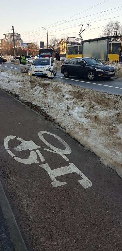 У вівторок, 23 лютого, на вулиці Княгині Ольги у Львові близько 8:25 год сталася дорожньо-транспортна пригода за участю двох автомобілів, один з яких — службове авто поліції.