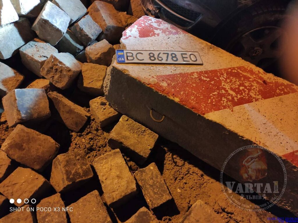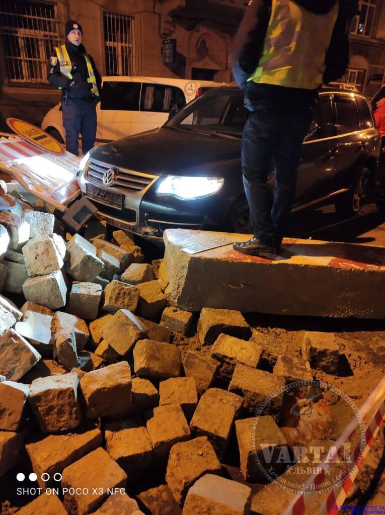 - У Львові автомобіль влетів у гору бруківки