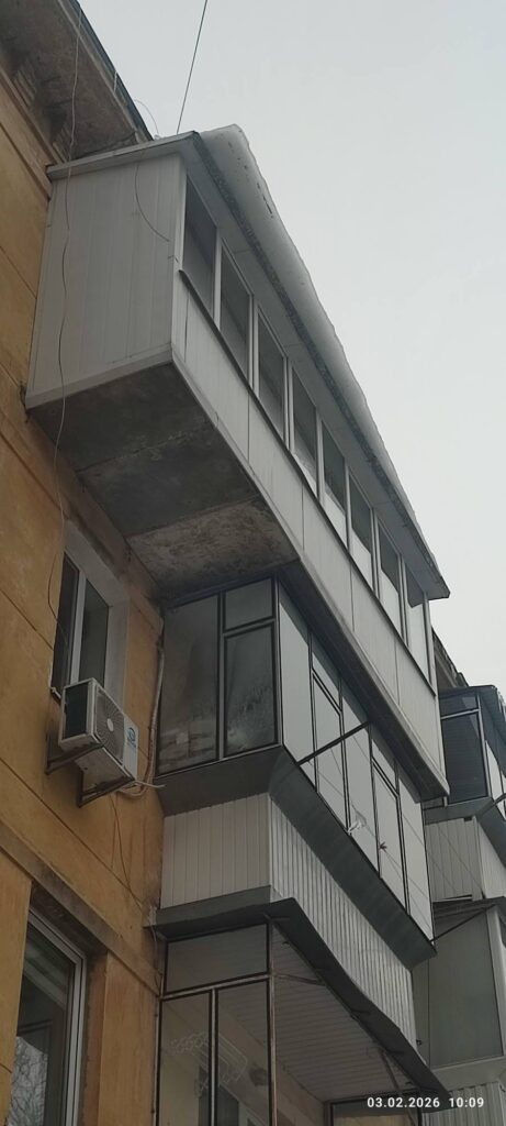 У Львові за адресою Коновальця 85а, перший під’їзд з дашка звисає величезна брила льоду.