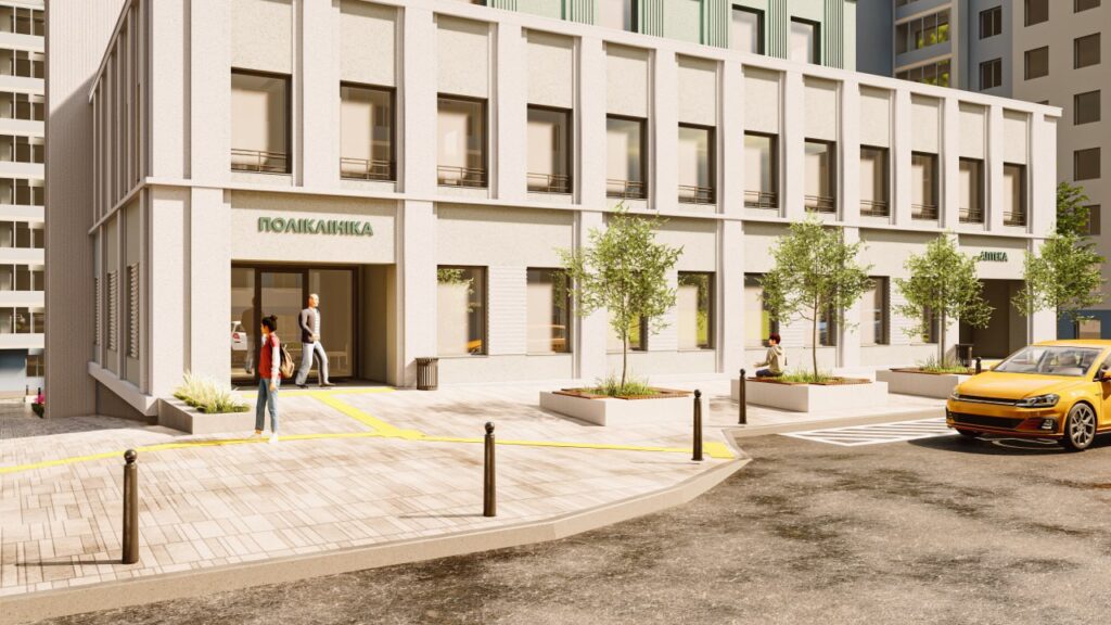 Містобудівні умови та обмеження для будівництва погодили ще у вересні 2024 року на засіданні виконавчого комітету. Архітектор проєкту Іван Капустей розповів, що будівництво передбачає також благоустрій території навколо поліклініки. А саме: