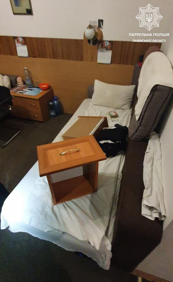 Разом з нею поліцейські прослідкували у номер і виявили на ліжку шухляди та відсутність тумбочки. Решта речей теж з цього готелю.