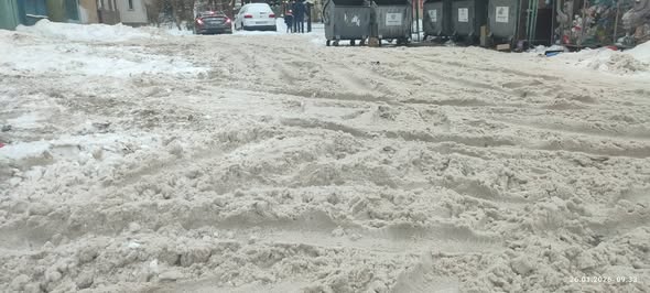 Снігоприбиральна техніка на цій вулиці була лише 1 раз, і то нагорнули кучугури з дороги туди, де ходять люди.