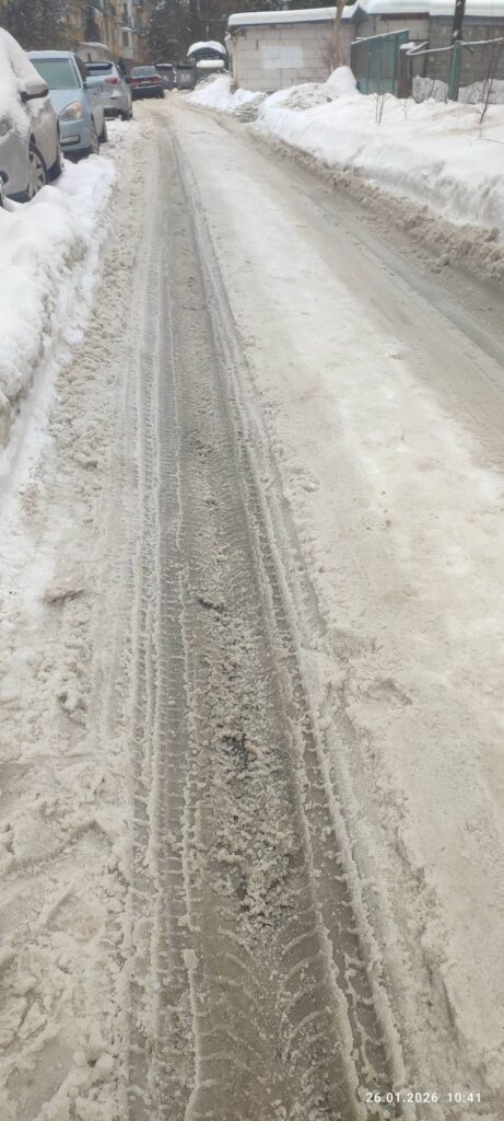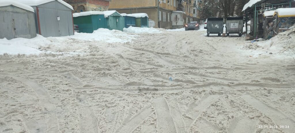 Снігоприбиральна техніка на цій вулиці була лише 1 раз, і то нагорнули кучугури з дороги туди, де ходять люди.