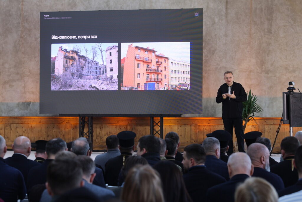 «Минулого року Львів 7 разів був під атаками ворога. Загалом пошкоджено більше 170 будівель. Деякі будівлі атакували три рази. Однак нині 90% всіх пошкоджених об’єктів ми відновили, відреставрували. Натомість, де немає можливості відновити, бо зруйновано майже все, — там буде громадський простір. А мешканцям цих будинків місто виплатило кошти на придбання нового житла.