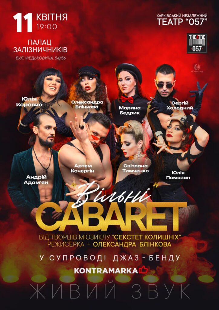 У шоу-кабаре “Вільні” від Музичного театру «057» глядачі стають активними учасниками дійства – від моменту, коли відчиняються двері кабаре, кожен присутній опиняється в іншому світі, в центрі усіх події.