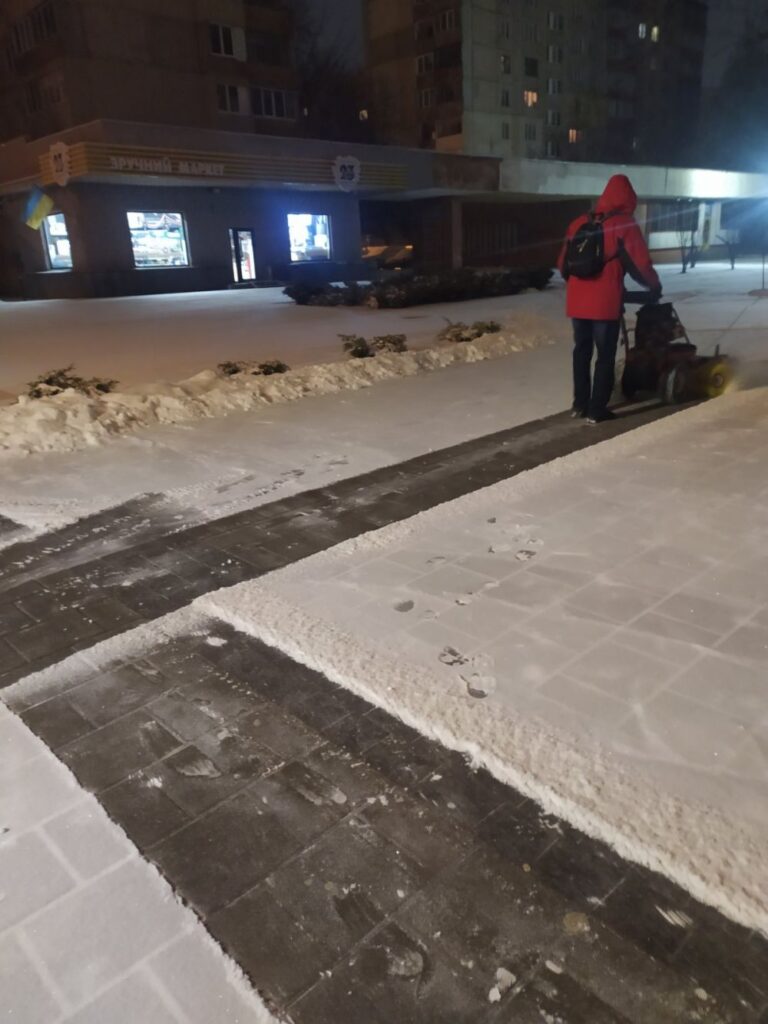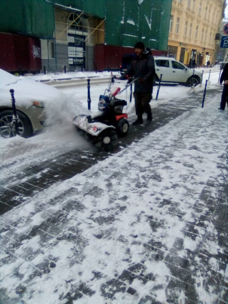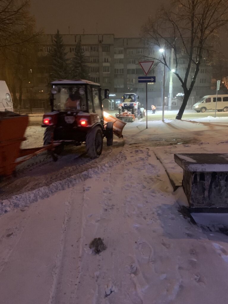 Із самого ранку почали працювати мотоблоки для того, щоб очистити тротуари, працювали тракторці. Зараз техніка буде працювати у посиленому режимі. До 13 години вдень працюватимуть підмітальні тракторці та підмітальна техніка, щоб максимально прибрати хідники і дороги, тому що сніг падав усю ніч і продовжує падати у меншій кількості надалі.