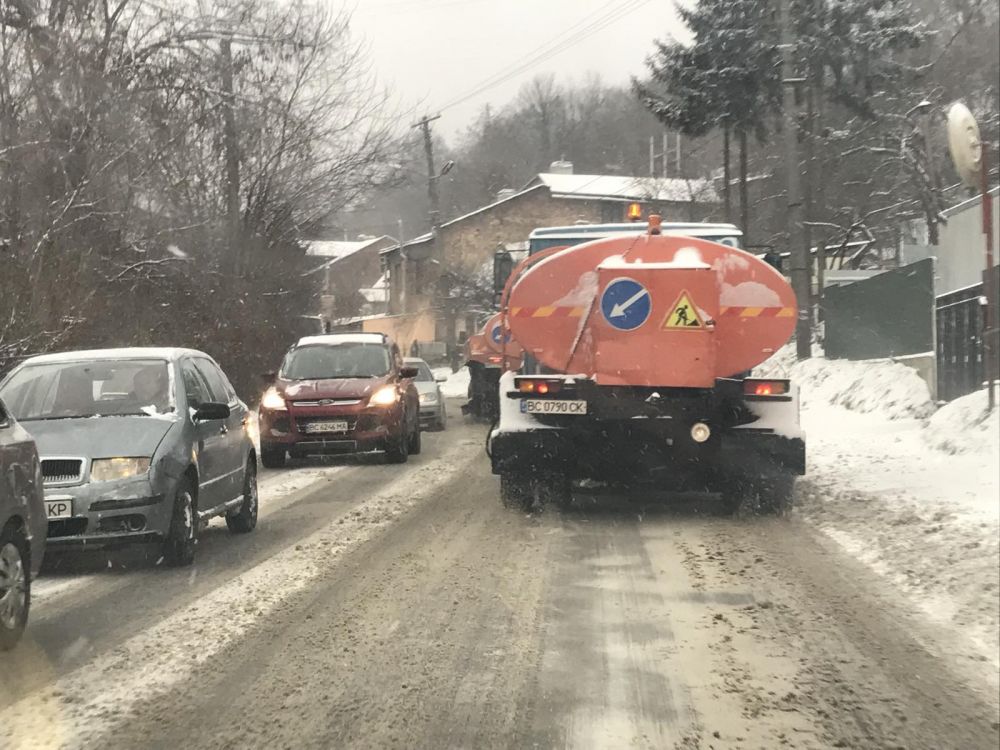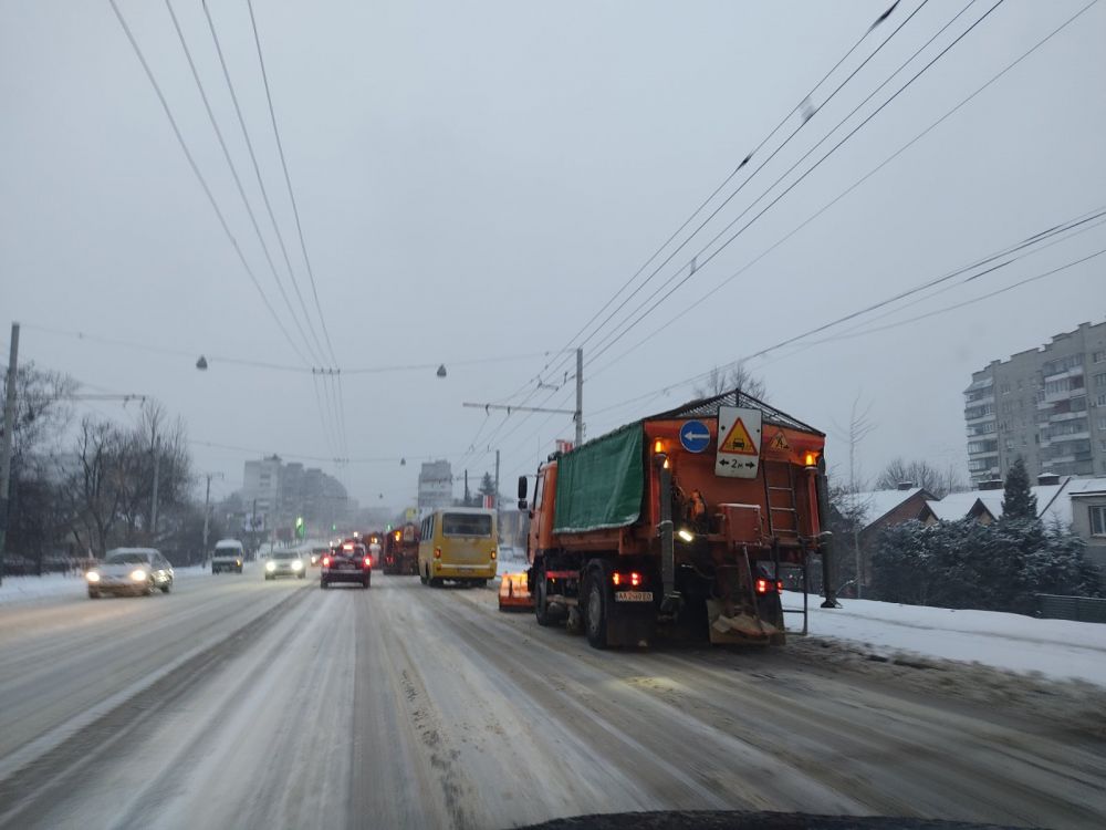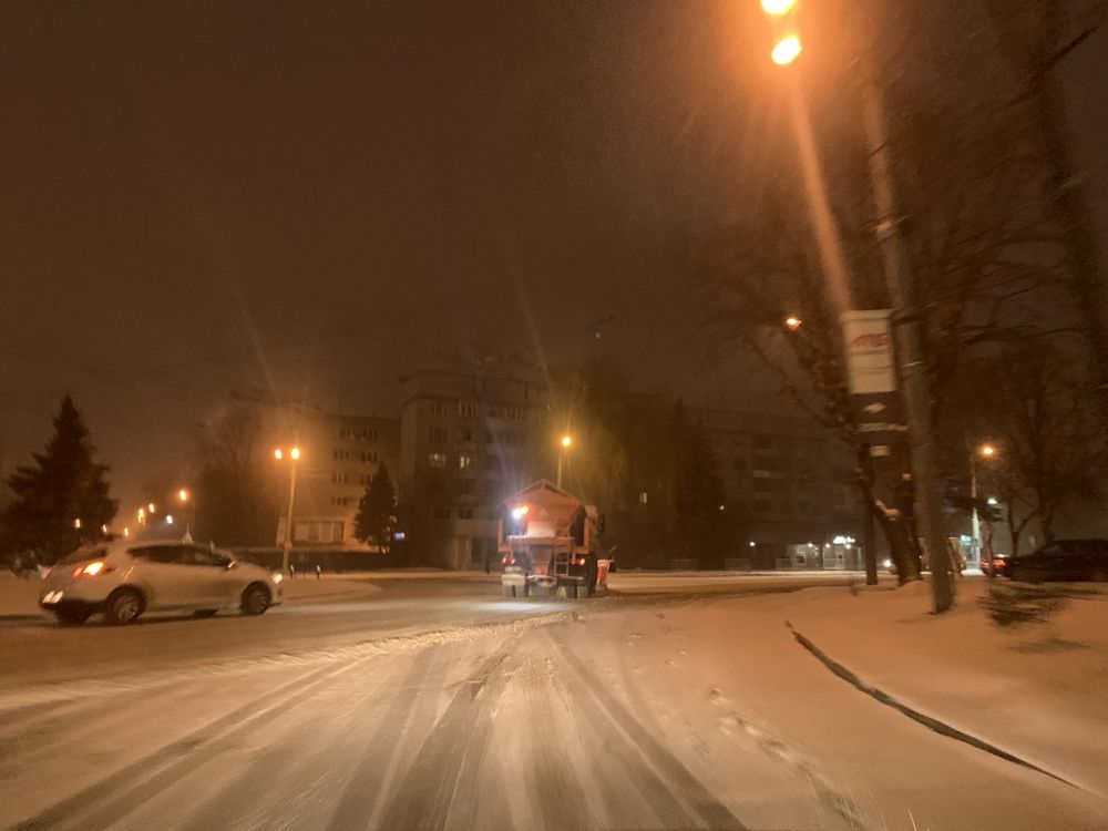 «Вночі техніка прибирала місто. Працювало 84 одиниці техніки. Працювали у посиленому режимі, тому що сніг почав падати о пів на 2 ночі. За ніч використали 385 м3 піскосуміші. Крім того, ми посипаємо 72 магістральні дороги сіллю – було використано 98,5 тонни солі.