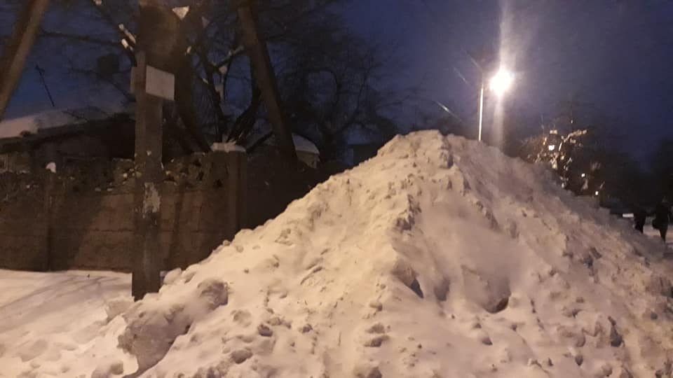 “Прошу допомогти в вирішенні проблеми. Мешканці будинку по вул. Каховська, 29, найняли трактор, який почистив дорогу і територію біля будинку. При тому, майже весь сніг звіз в одну кучу на розі приватного будинку. Снігова гірка вища за паркан. Що з тим робити? Хто то буде прибирати? Я все розумію, але треба мати совість. Як то розгрібати?”, – йдеться у повідомленні.