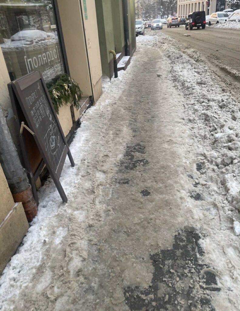“Вузький тротуар біля будинку 32 вул. Личаківської, розташованого впритул до великого медичного обʼєкту, вкритий льодяними нашаруваннями, які балансоутримувач території ЛКП “Господар” не прибирає впродовж багатьох днів”, – йдеться у повідомленні.