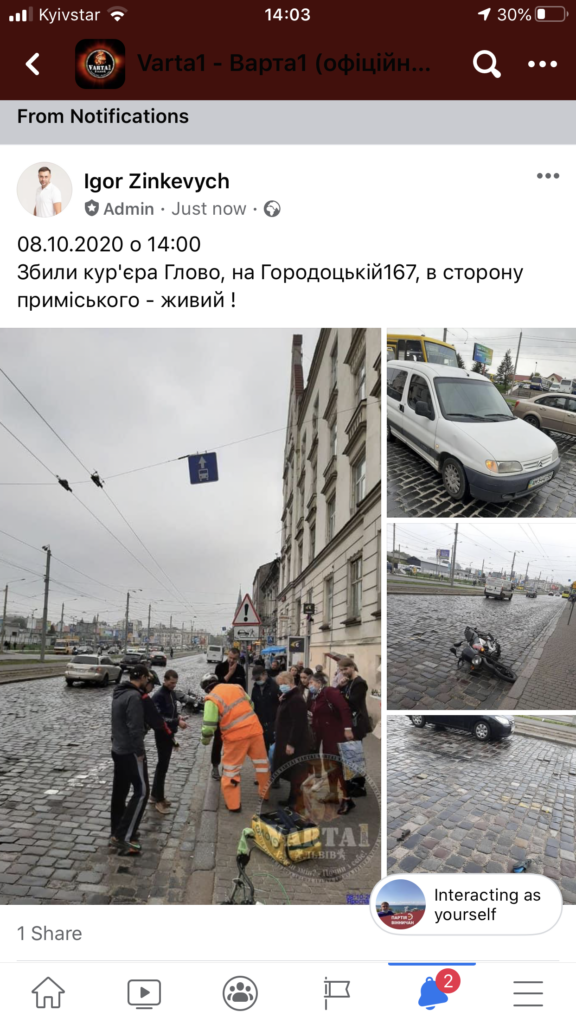 У Львові на вулиці Городоцькій збили кур’єра.