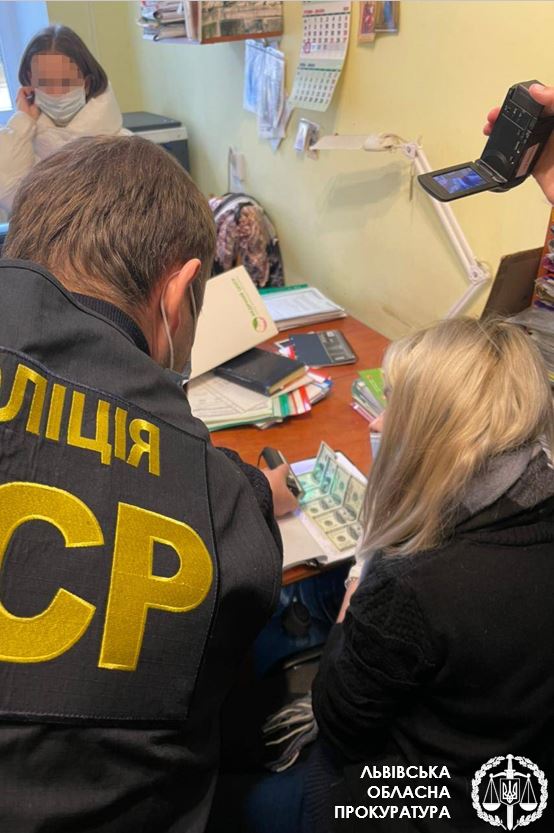 Процесуальними керівниками Львівської обласної прокуратури під час контролю за вчиненням злочину викрито та задокументовано факт вимагання та одержання неправомірної вигоди посадовицею комунального підприємства Львівської міськради (ч.3 ст.368 КК України).