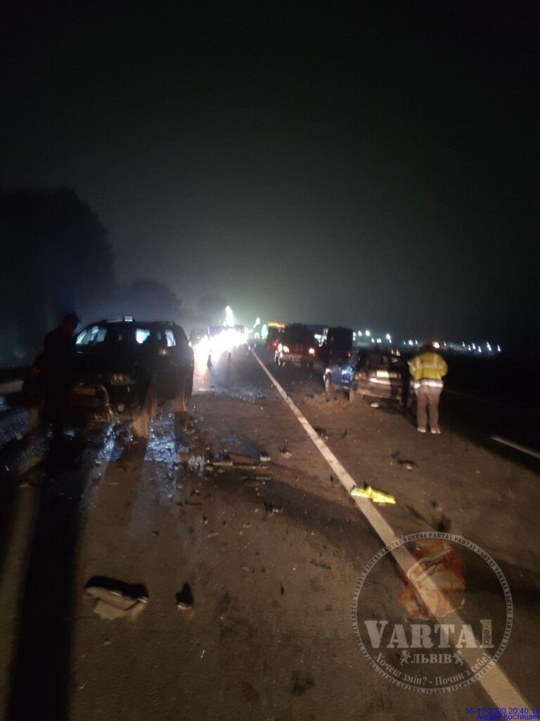 “Відбулося зіткнення п’ятьох автомобілів. Попередньо відомо, що зіштовхнулись “Mitsubishi”, “Audi”, “Volkswagen”, “Ford”, та “Skoda”, яка власне від удару вилетіла в кювет.” – розповів кореспондент.