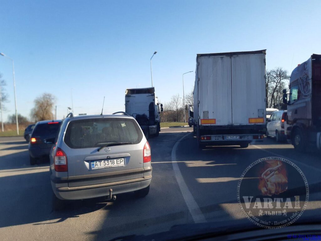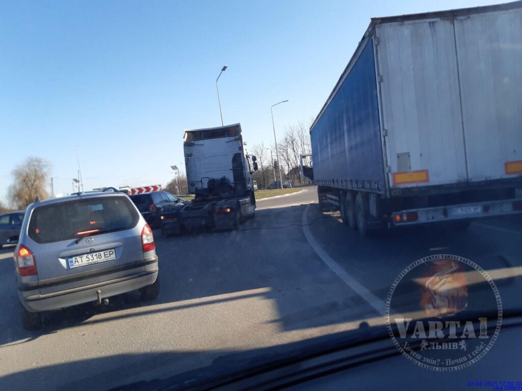 Як йдеться у повідомленні, вантажівки зупинились на кільці на вулиці Городоцькій.