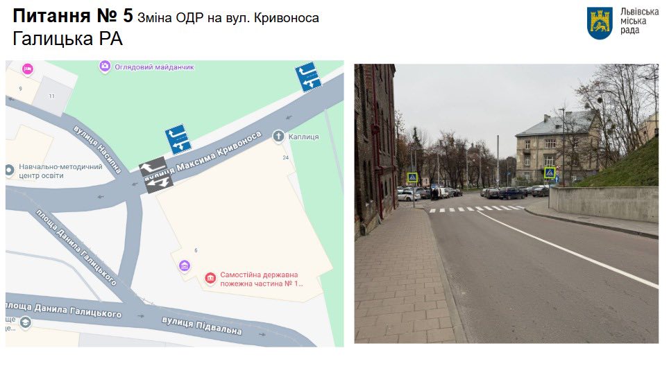 Також на перехресті вул. Насипна – вул. Кривоноса – площа Данила Галицького буде нанесено дорожню розмітку острівця безпеки.